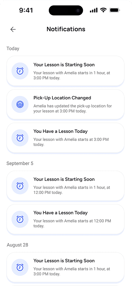 Chat directly with your instructor to confirm lessons, ask questions, and make changes with ease.