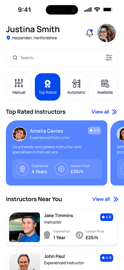 Compare profiles, check reviews, and book lessons — all in the Shifter app.